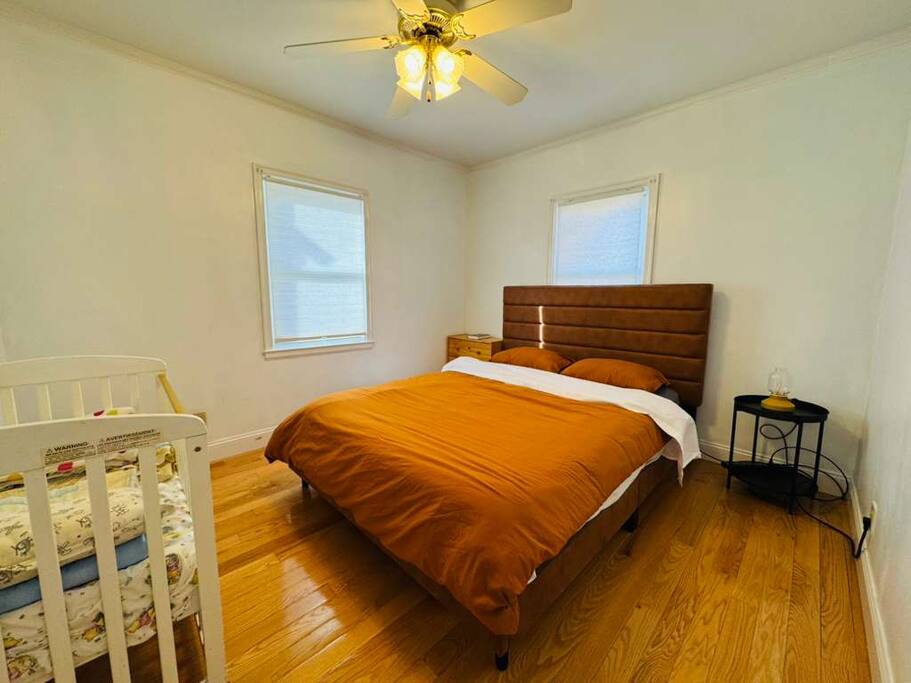 Welcome to your family's perfect getaway! Our cozy 3-bedroom home is ideal for families with little ones along with a crib! With a Private workspace, enjoy a spacious deck, a beautiful backyard, and a range of amenities to make your stay truly unforgettable. For the comfort of your stay, we recently installed smart toilets and water filters. ★ Private Workspace ★ ✔ Dedicated room ✔ Desk and office chair ✔ Perfect for remote work or study. ★ For Infants & Little ones ★ ✔ Baby Bottle ✔ Electric Pump ✔ Stand alone high chair ✔ Children's Car seat ✔ Double Stroller ✔ Children's toys ✔ Crib and Pack n Play ★ Bedrooms★ First Floor: Two Bedrooms ✔ Full-size beds, perfect for a good night's sleep. Second Floor: Spacious master bedroom ✔ Crib ✔ King-sized bed ✔ Ensuite Half bathroom for added convenience. ✔ No blinds for skylights ★ Living Room ★ ✔ Enjoy movie nights with a 55-inch TV ✔ Netflix account ready for your entertainment. ✔ Plush & comfortable 5-seater L-shaped sofa. ✔ Split system air conditioning. ★ BACKYARD★ ✔ Portable charcoal Grill ✔ 2 sets of outdoor furnitures ✔ 3 seater Rattan chairs & Table ✔ 6 seater L-shaped Rattan chair & Table ★ Kitchen ★ Fully-equipped kitchen with modern appliances. ✔ Oven ✔ Stove ✔ Blender ✔ Refrigerator ✔ Microwave oven ✔ Hot Water Kettle ✔ 4 Seater Dining Table ✔ Ready-to-Drink Filtered Water ✔ Keurigg Coffee Machine with K cup These amenities make your stay comfortable, productive, and enjoyable in our family-friendly home.