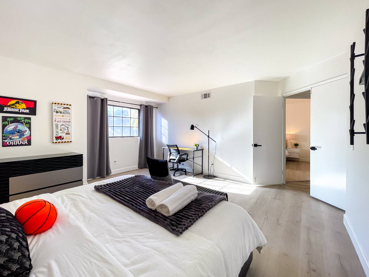 LIMITATIONS: ⚡️ Pets are welcome! There is a pet fee of $200 per pet and per month. Guests are responsible for any damage caused by their pets. Please bring sheets to cover beds and or furniture. Clean up after your pet prior to departure. ⚡️ The unit has a Private Pool with Spa. Spa can be heated for $50 per day. The pool itself doesn’t heat, but water circulation will warm up the pool if spa is heated . To turn on the hot tube, you need to check in the house and call the pool guy to arrange ⚡️ Driveway parking for can fit up to 2 vehicles only and Garage parking can fit up to 2 vehicles as well. ⚡️ Crib is available upon request. If you need it, please let us know ahead of time so we can set it up upon your arrival. ⚡️ No cable and streaming devices or account available. Guest must use their account such as Netflix etc. ⚡️ We only provide initial supply of consumables such as toilet paper, paper towels etc. (We do not provide detergent for washer.) Guest need to be responsible for their own supplies after initial set is depleted ⚡️ We would need your help on pushing out the trash bins to the curbside every week during your stay. Trash day is every Monday. Please push out on Sunday night and pull back on Monday ⚡️The monthly price includes a mandatory complimentary housekeeping every 30 day HOUSE RULES : ✘ NO SMOKING WITHIN 15FT OF THE PROPERTY ✘ NO PARTIES AND EVENTS ✘ NO UNREGISTERED GUESTS OUTSIDE RESERVATION COUNT More house rules can be found in the House Rules section. Failure to comply with the rules may result in fines or even eviction.