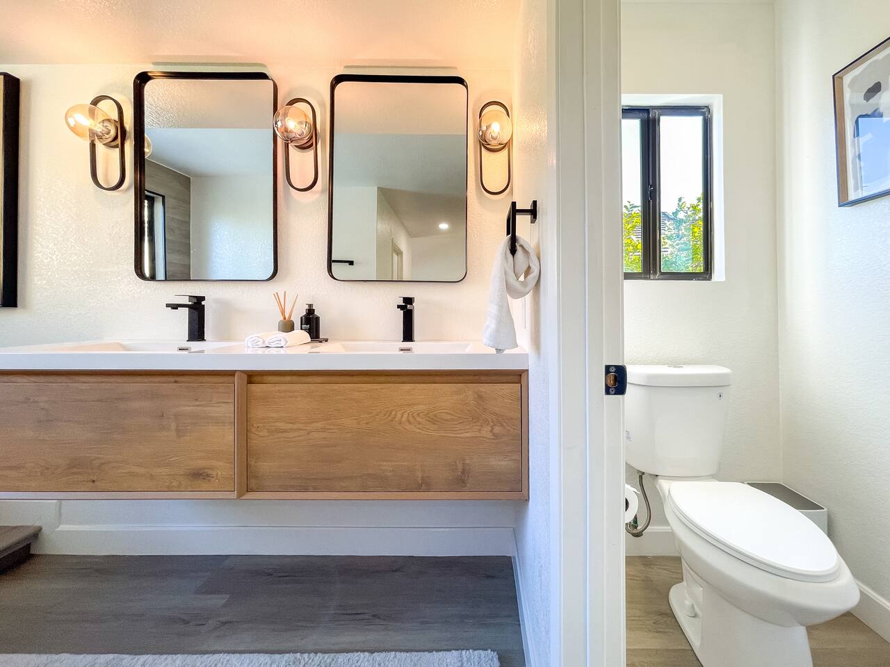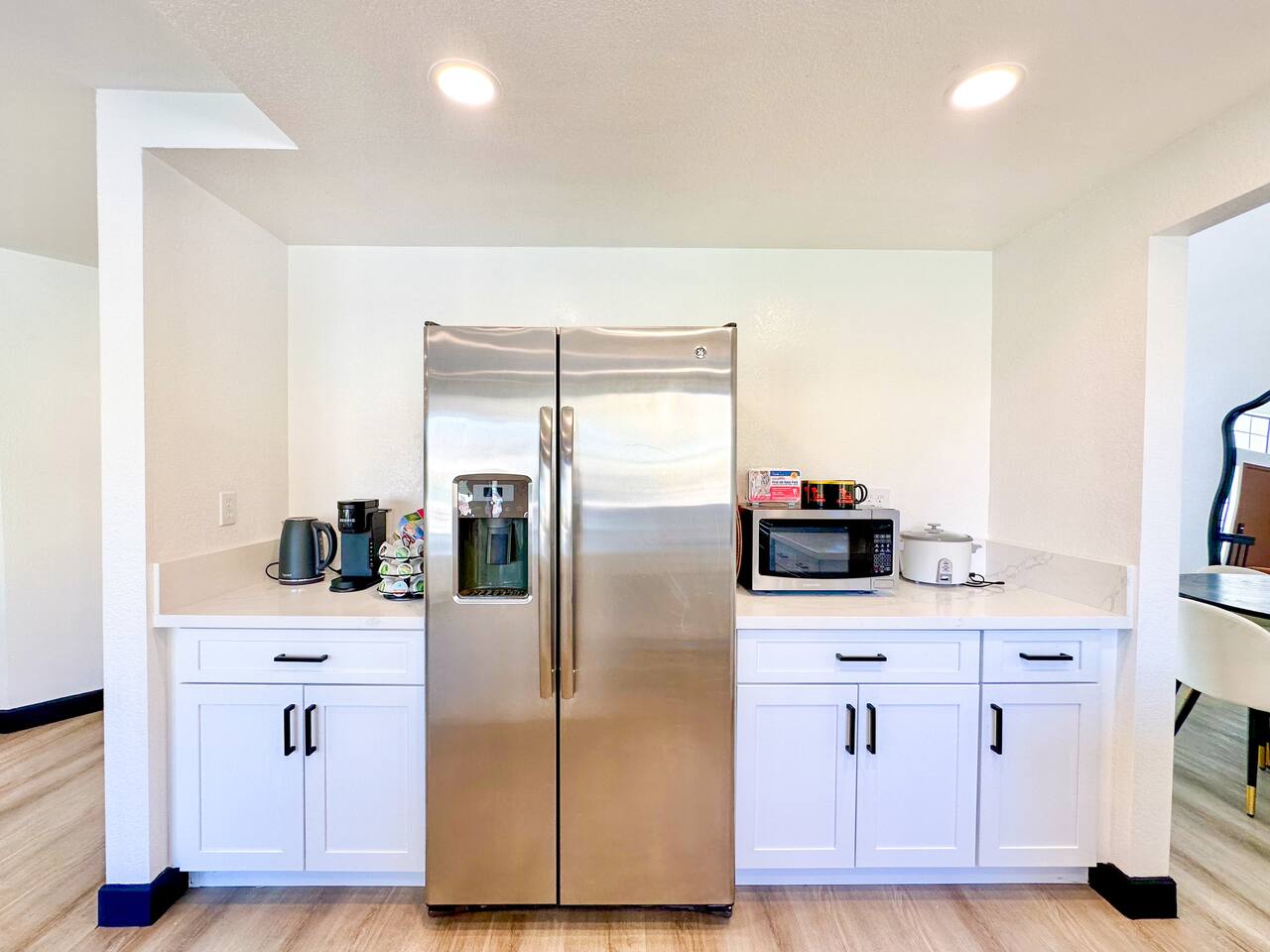 Welcome to our 2,500+ sqft pet-friendly home, blending modernity with cozy vibes! 🏊 Amenities: - Heated Spa - Outdoor Pool - Outdoor furnitures - Outdoor dining table - Sunloungers - Backyard with Decorative lights 📆 Home Office: - 2 sets of desk with office chair - Desk mat - Black board - Dedicated for WFH guests 🛋️ Living Room 1: - Cloud designed sofa and accent chairs - Aesthetically designed - Big Mirror - 75" Smart TV - with streaming applications to use! 🛋️ Living Room 2: - Comfortable sofa and accent chairs - Indoor decorative fireplace - 60" Smart TV - with streaming applications to use! 🛏️ Bedrooms: - All bedrooms with King-sized beds - 1 bedroom on the 1st floor, 4 bedrooms on the 2nd floor - 2nd bedroom has dedicated workspace - Crib available upon request 🥘 Kitchen: - 2 sets of 4-seater dining table - Island counter with 4 stools - Hot water kettle - Microwave - Keurig coffe maker - K-cups provided - Rice cooker - Refrigerator - Electric Stove - Stainless steel Oven - Dishwasher - Cooking utensils, pots, and pans - Drip coffee maker with sugar and cream 🫧 Bathrooms: - 3 bathrooms - 1 on the first floor, 2 on the second floor - Bathtub - Hair dryer available 🧺 Laundry: - Washer and dryer - Iron and ironing board 🅿️ Parking: - Garage for up to 2 cars - Driveway parking for up to 2 cars