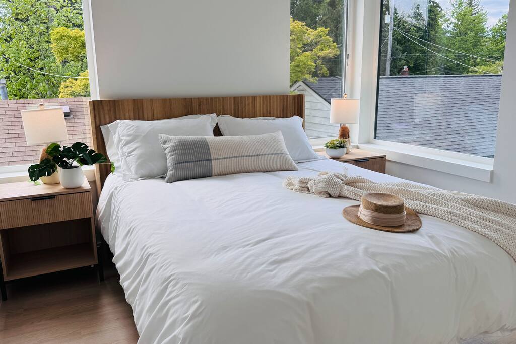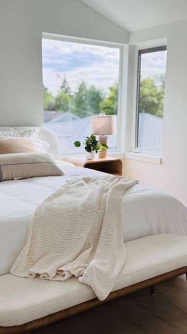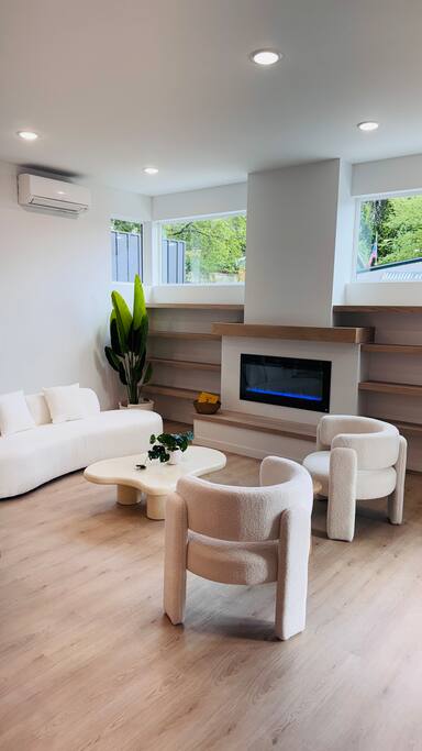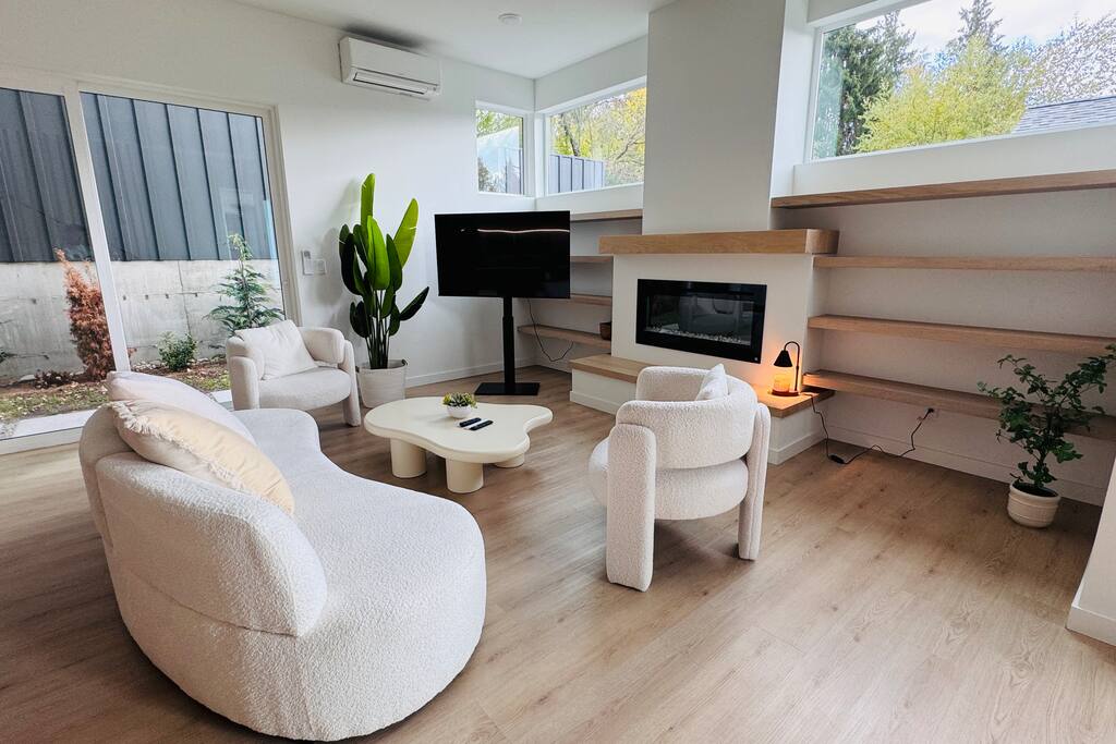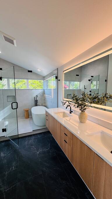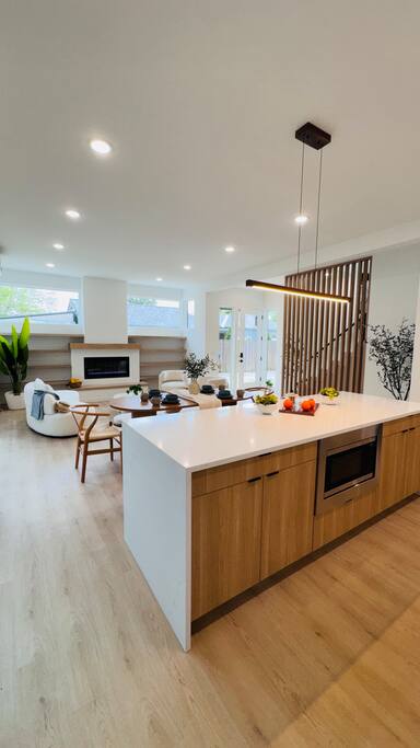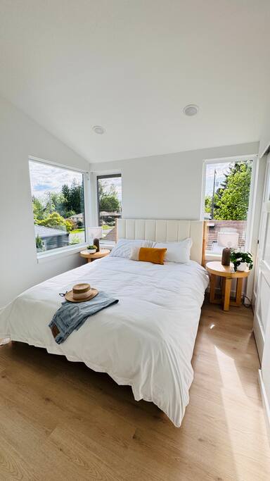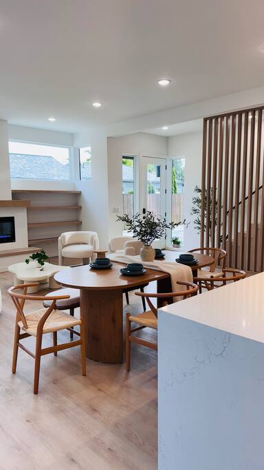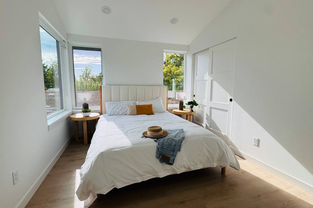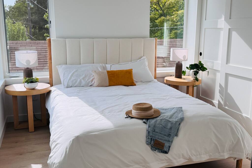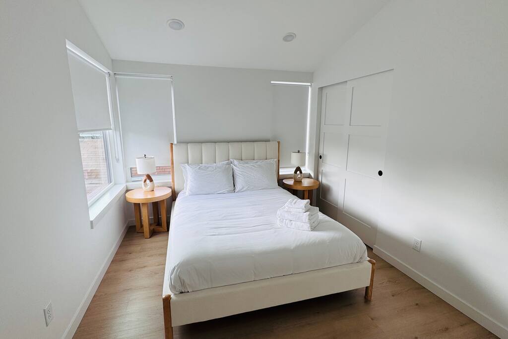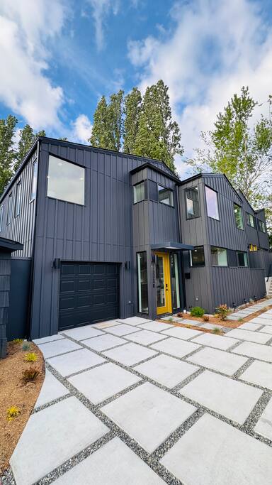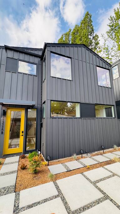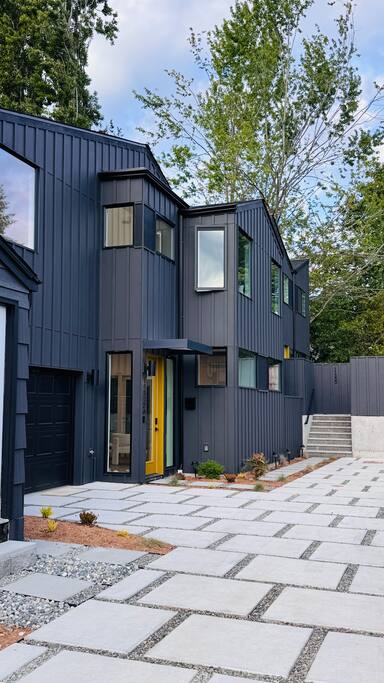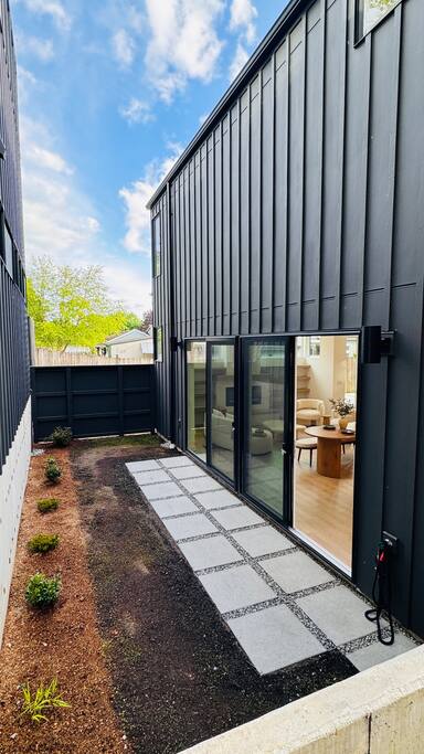 π Modern Luxury & Comfort: Step into your newly built designer retreat, featuring up to 15-ft ceilings, skylights, and oversized windows that fill the home with natural light. Every corner of this 3-bedroom, 2-bath home is crafted for elegance and function β perfect for families, business travelers, or long-term guests. β‘οΈ Modern Amenities: High-end finishes and contemporary design Samsung Bespoke appliances for a premium kitchen experience Central A/C and heating for year-round comfort Regular outdoor outlet by the front door that you can use to charge your EV ( bring your own adapter and charging cable). In-unit washer and dryer for convenience π³ Gourmet Kitchen: Fully equipped kitchen with cookware, dishware, and utensils Sleek Samsung Bespoke refrigerator, oven, and microwave Coffee maker, toaster, and dining area for six π Sleeping Arrangements: Primary Bedroom: King bed with ensuite bath Bedrooms 2β3: Each with plush queen beds and storage Premium bedding and blackout curtains for restful sleep π³ Private Outdoor Space: Enjoy a private yard β ideal for morning coffee, reading, or entertaining guests Patio seating area and green space for relaxation π Convenient Parking: 1 assigned parking space in front of the house Tight driveway shared with the neighboring home β please park carefully Garage available but compact β best suited for small vehicles Free street parking also available nearby π§Ί Laundry: In-unit washer & dryer