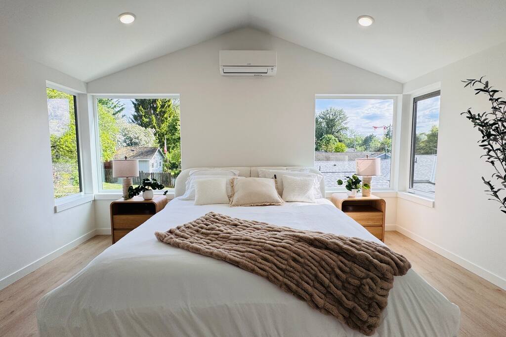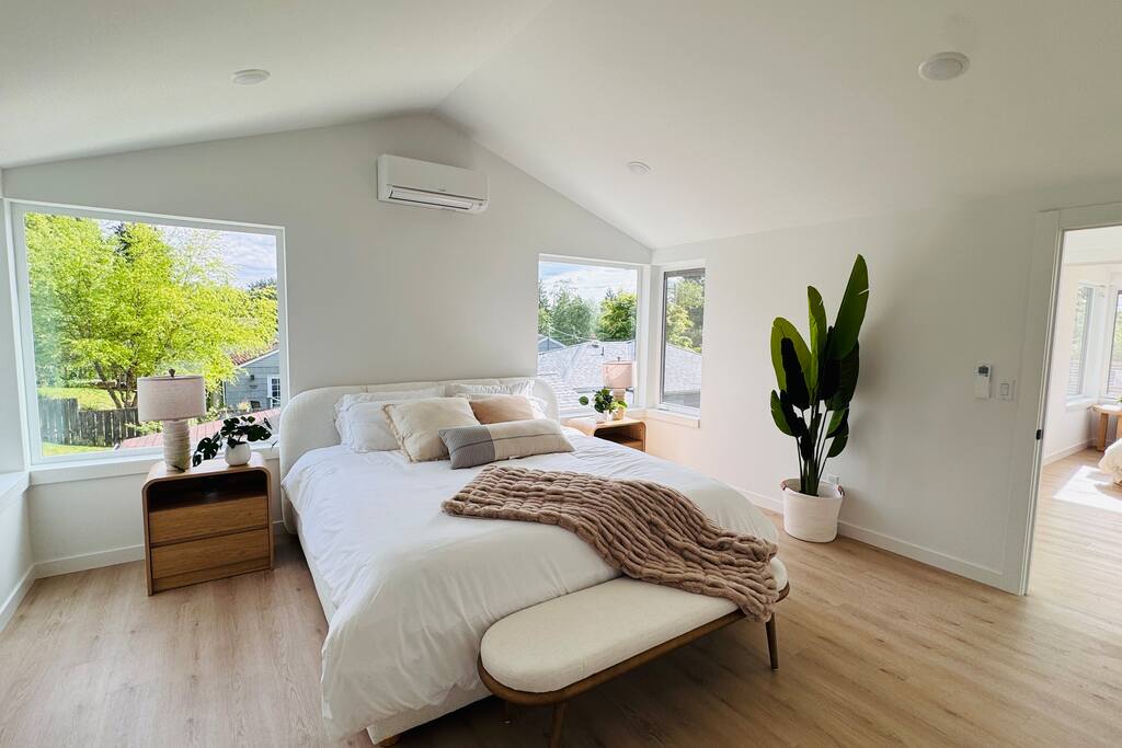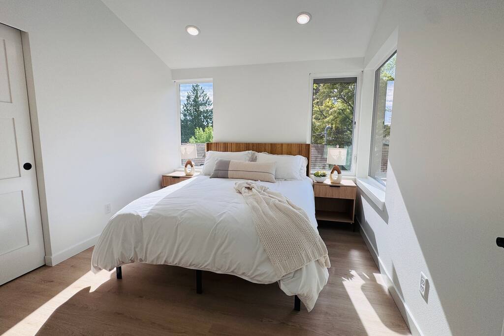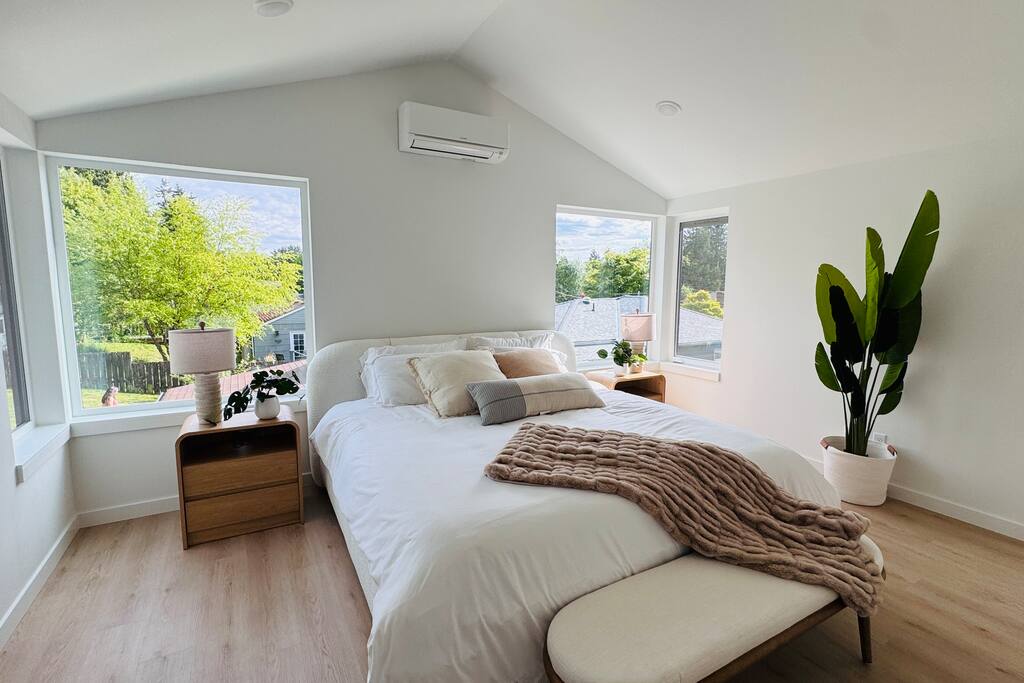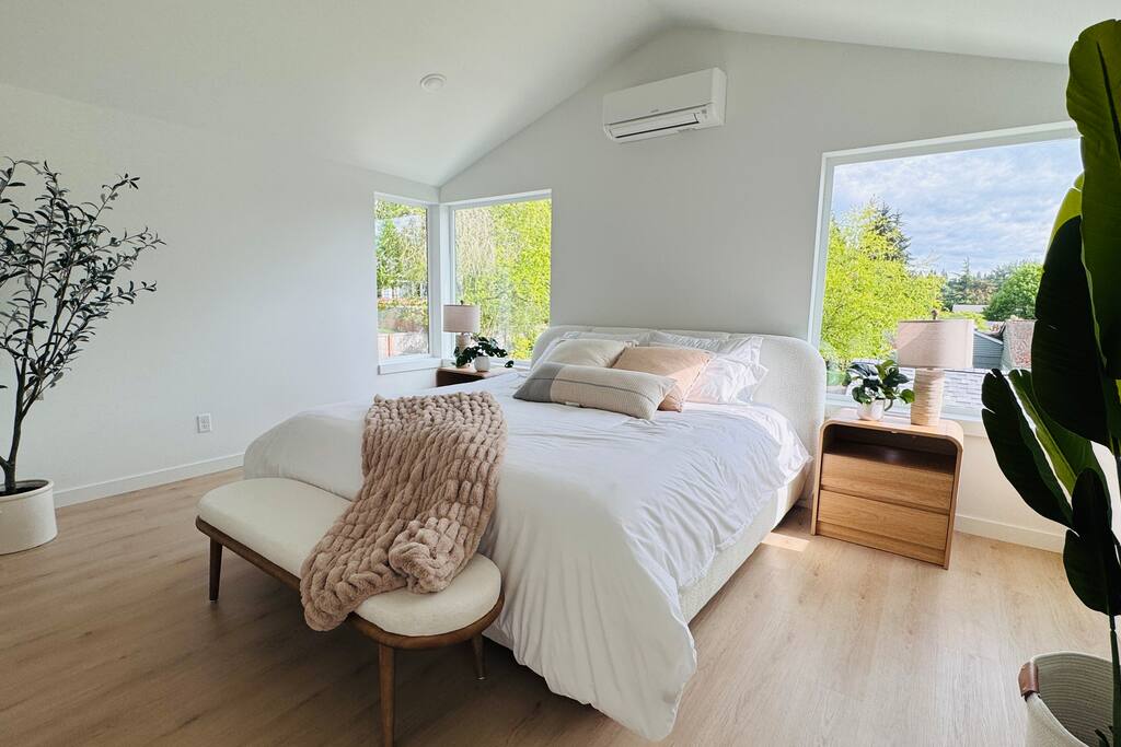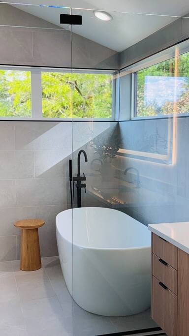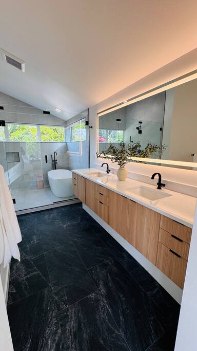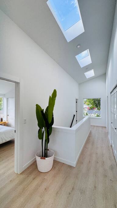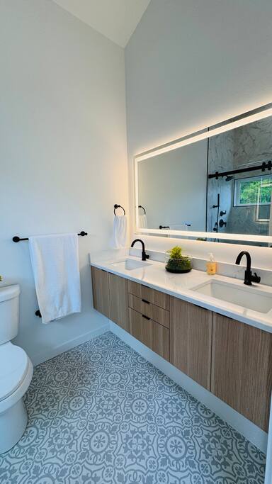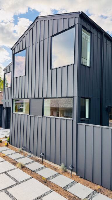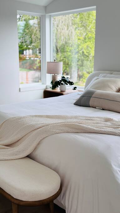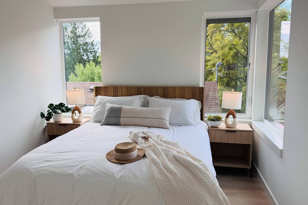 π Modern Luxury & Comfort: Step into your newly built designer retreat, featuring up to 15-ft ceilings, skylights, and oversized windows that fill the home with natural light. Every corner of this 3-bedroom, 2-bath home is crafted for elegance and function β perfect for families, business travelers, or long-term guests. β‘οΈ Modern Amenities: High-end finishes and contemporary design Samsung Bespoke appliances for a premium kitchen experience Central A/C and heating for year-round comfort Regular outdoor outlet by the front door that you can use to charge your EV ( bring your own adapter and charging cable). In-unit washer and dryer for convenience π³ Gourmet Kitchen: Fully equipped kitchen with cookware, dishware, and utensils Sleek Samsung Bespoke refrigerator, oven, and microwave Coffee maker, toaster, and dining area for six π Sleeping Arrangements: Primary Bedroom: King bed with ensuite bath Bedrooms 2β3: Each with plush queen beds and storage Premium bedding and blackout curtains for restful sleep π³ Private Outdoor Space: Enjoy a private yard β ideal for morning coffee, reading, or entertaining guests Patio seating area and green space for relaxation π Convenient Parking: 1 assigned parking space in front of the house Tight driveway shared with the neighboring home β please park carefully Garage available but compact β best suited for small vehicles Free street parking also available nearby π§Ί Laundry: In-unit washer & dryer