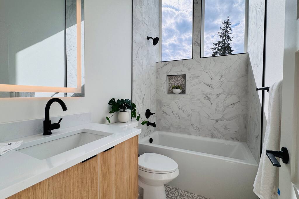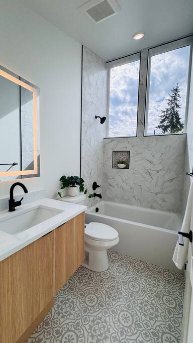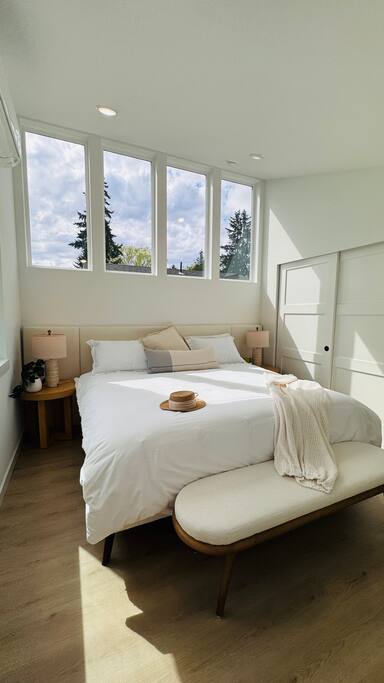 Welcome to your Luxurious retreat in the heart of Seattle! This newly constructed 4-bedroom, 2-bathroom home spans 1,300 square feet, offering ample space and comfort. The home boasts up to 15-foot ceilings, sky lights and oversized windows, flooding the space with natural light. Free parking, close to shopping malls, hospitals, restaurants, grocery stores, and major highways. Ideal for extended stays. Enjoy discounts for extended stays! Weekly Stays: Save 13% Monthly Stays: Save 30%