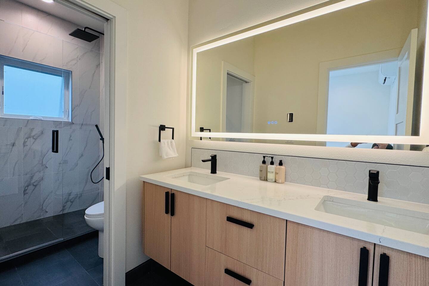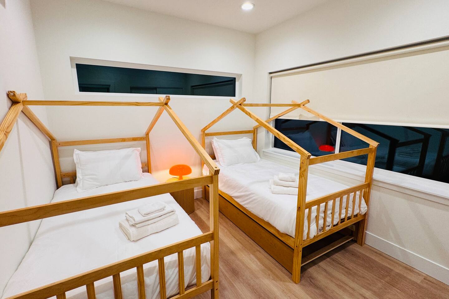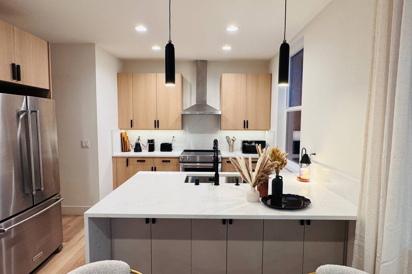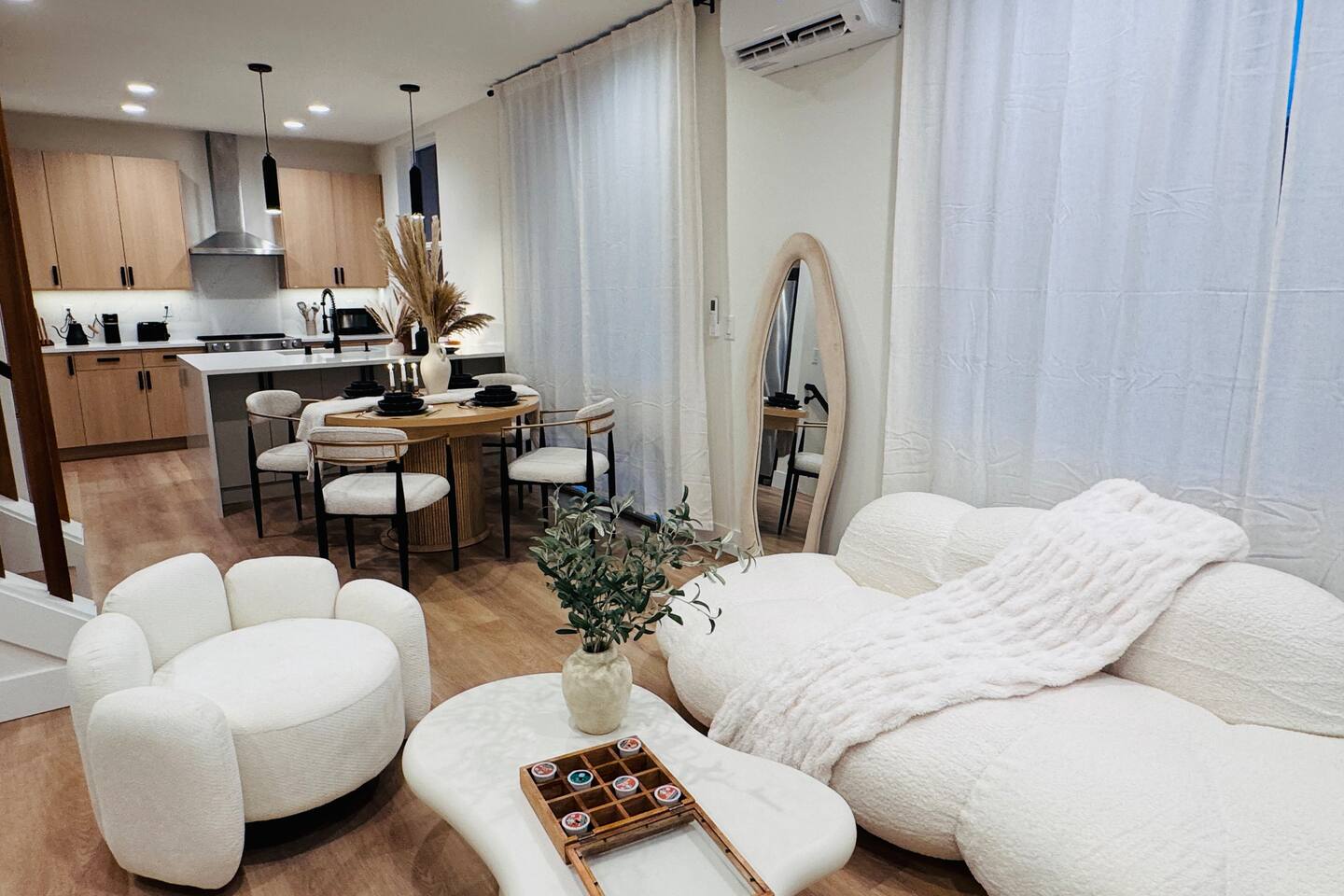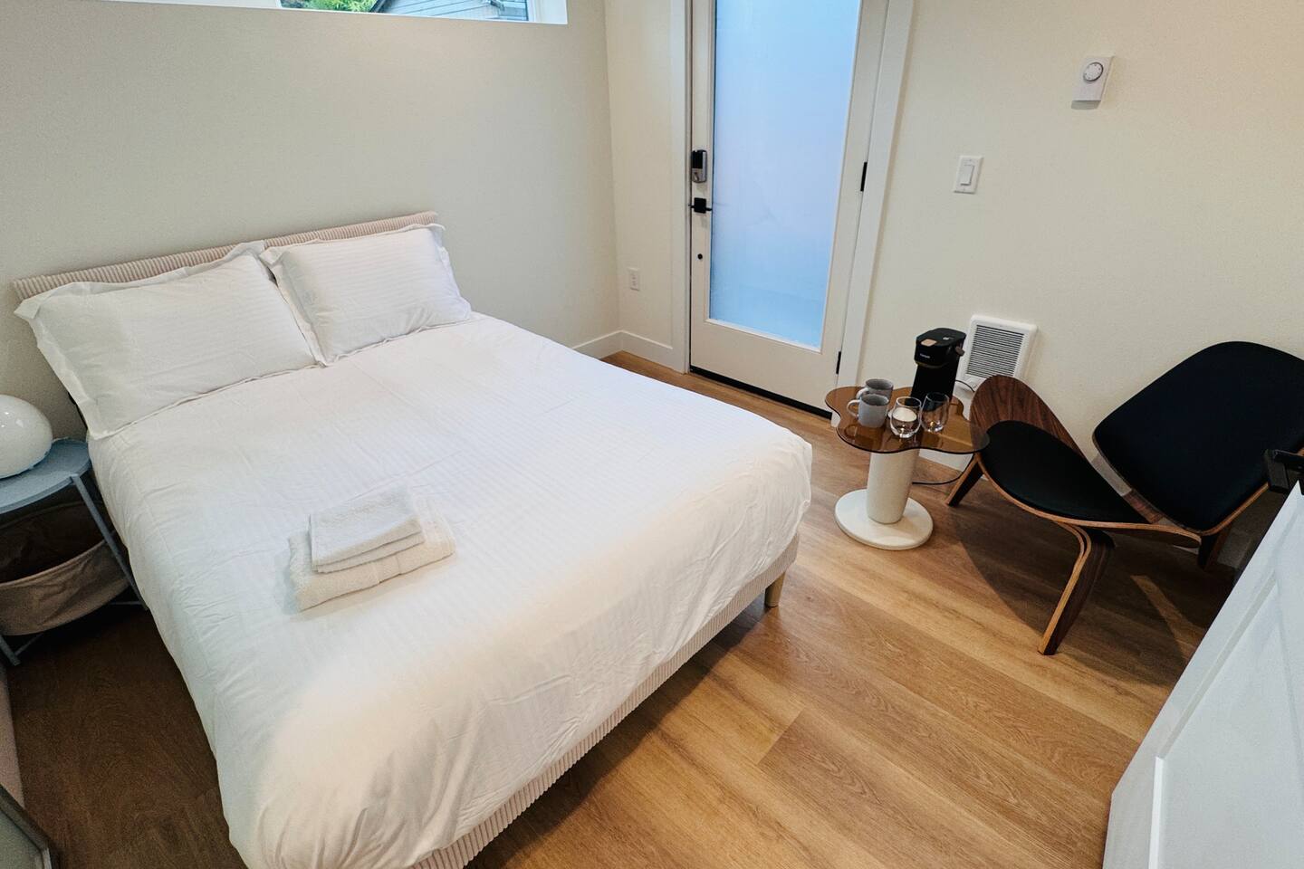 🌟 Newly Built 3-Story Modern Home: Contemporary design with bright, open living areas High-end finishes and large windows throughout Private off-street parking behind the home 🛌 Bedrooms: Bedroom 1 (Master Suite): King bed • Ensuite bathroom • Floor heating • Ductless A/C Bedroom 2: Two twin beds • Ductless A/C Bedroom 3: Full bed • Ensuite bathroom • Ductless A/C 🛁 Bathrooms: 3.5 bathrooms total Heater in every bathroom Floor heating in the master ensuite 📺 Entertainment: 65" Smart TV in living room YouTube streaming available (no login required) High-speed Wi-Fi 🍳 Kitchen & Dining: Fully equipped modern kitchen Stainless steel appliances Spacious dining area for group meals 🔥 Climate Comfort: Ductless split A/C in each bedroom Bathroom heaters Efficient heating system