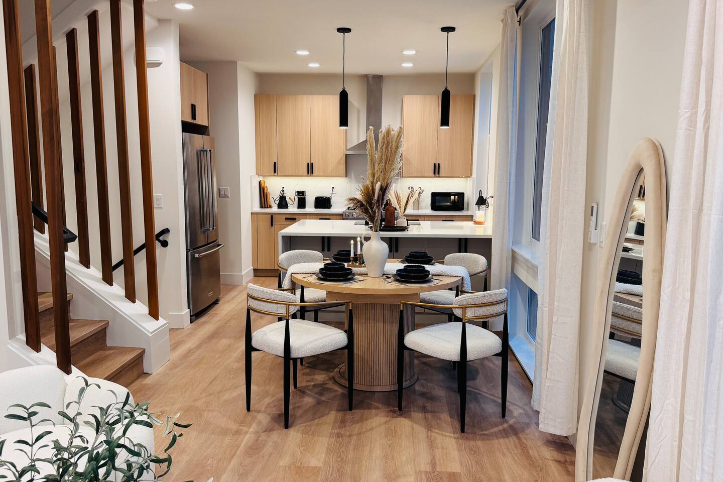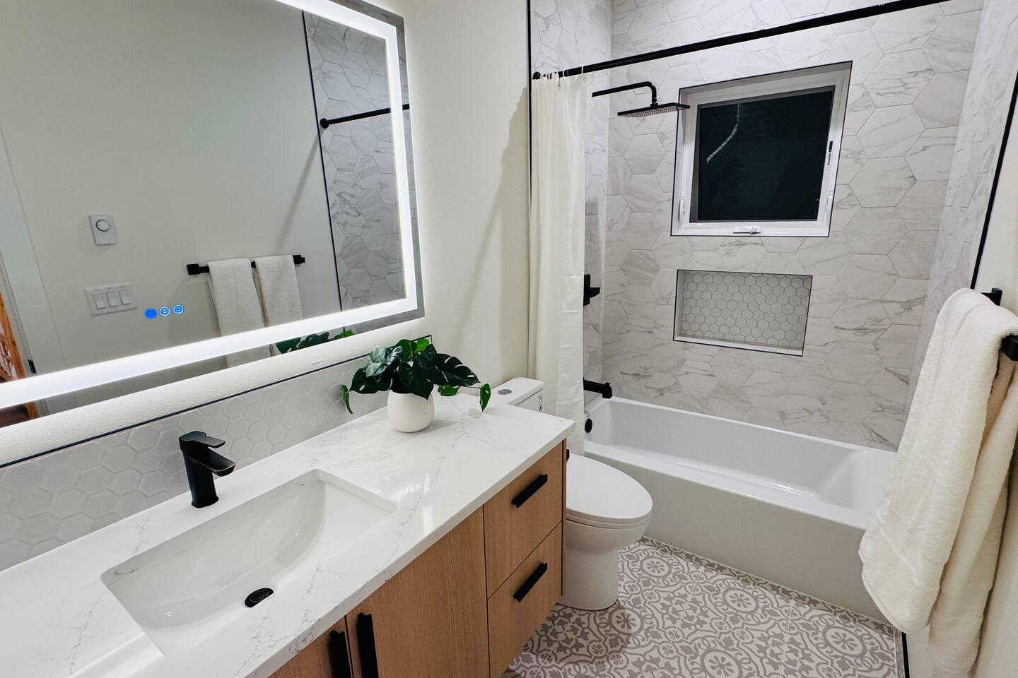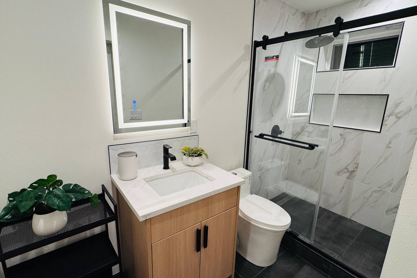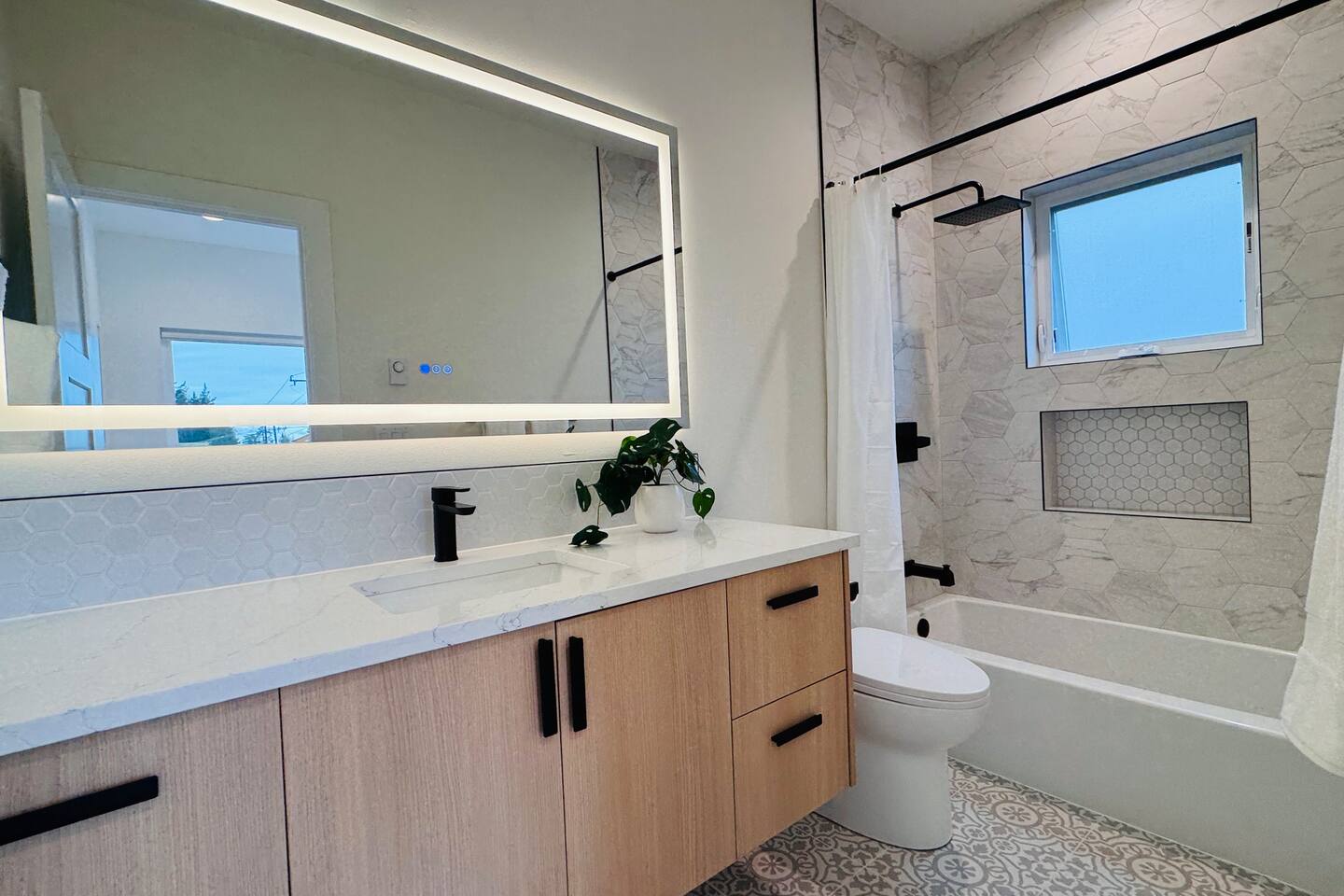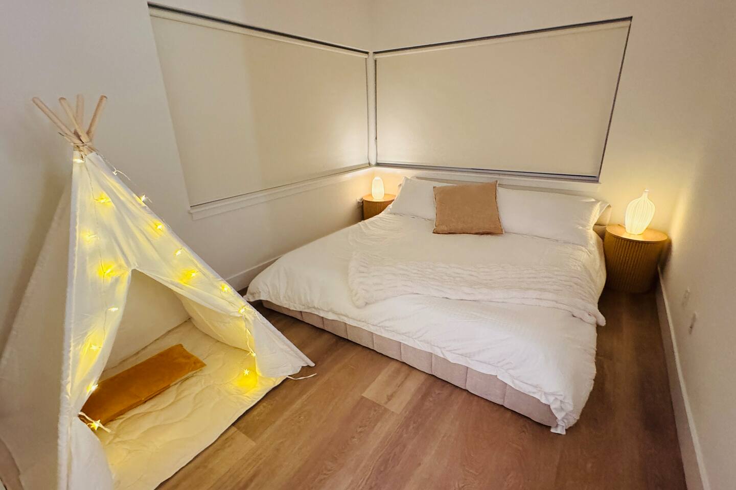 🌟 Newly Built 3-Story Modern Home: Contemporary design with bright, open living areas High-end finishes and large windows throughout Private off-street parking behind the home 🛌 Bedrooms: Bedroom 1 (Master Suite): King bed • Ensuite bathroom • Floor heating • Ductless A/C Bedroom 2: Two twin beds • Ductless A/C Bedroom 3: Full bed • Ensuite bathroom • Ductless A/C 🛁 Bathrooms: 3.5 bathrooms total Heater in every bathroom Floor heating in the master ensuite 📺 Entertainment: 65" Smart TV in living room YouTube streaming available (no login required) High-speed Wi-Fi 🍳 Kitchen & Dining: Fully equipped modern kitchen Stainless steel appliances Spacious dining area for group meals 🔥 Climate Comfort: Ductless split A/C in each bedroom Bathroom heaters Efficient heating system