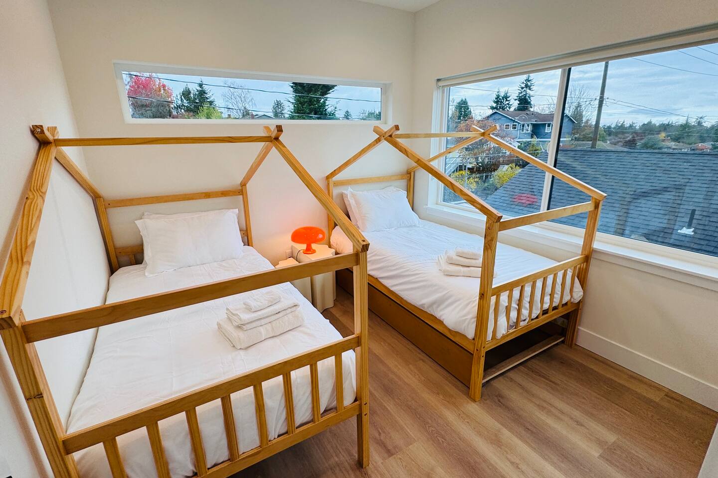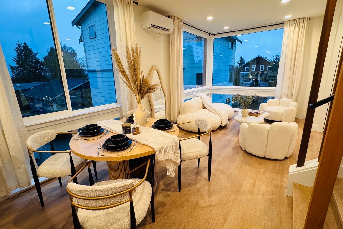 Stay in a newly built, modern 3-story Seattle home just minutes from Alki Beach—perfect for families and business travelers! ✨ 3BR Modern Home w/ Ensuites 📺 65" TV + YouTube Streaming 🔥 Floor & bathroom heating ❄️ Ductless AC in every room 🐾 Pets allowed ($50 per pet) 🚗 Off-street parking + free street parking ⛱️ 5 min to Alki Beach • 15 min to Downtown Seattle